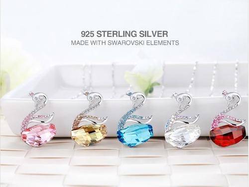 STUNNING GENIUINE 925 STERLING SILVER CHAIN AND 925 STERLING SILVER SWAN PENDANT WITH GENUINE SWAROVSKI ELEMENTS