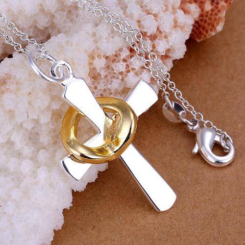 925 Sterling silver plated cross pendant & necklace with a detachable gold heart
