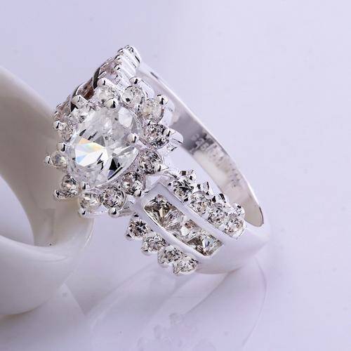 925 Sterling silver plated cz and crystal ring - size 7 - Stunning