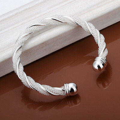 925 Sterling silver plated fashion Twist Mesh Cuff Bangle