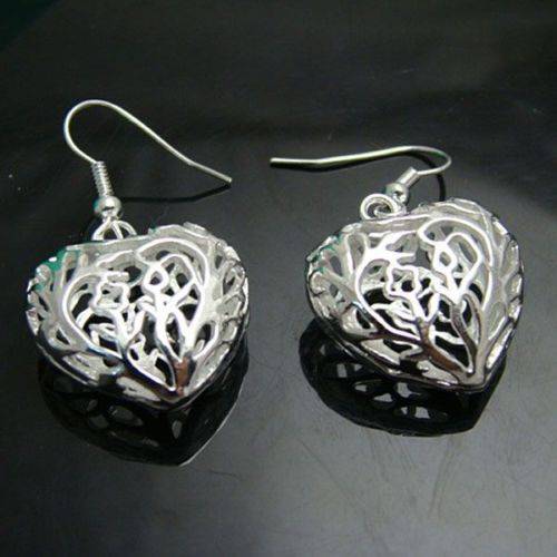 925 Sterling silver plated filigree style heart pendant necklace & earrings