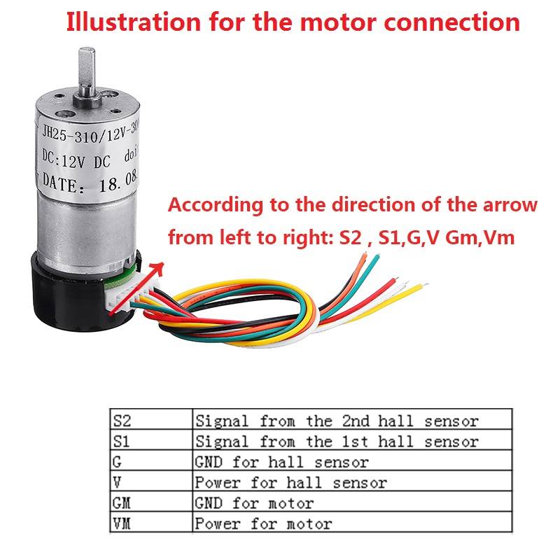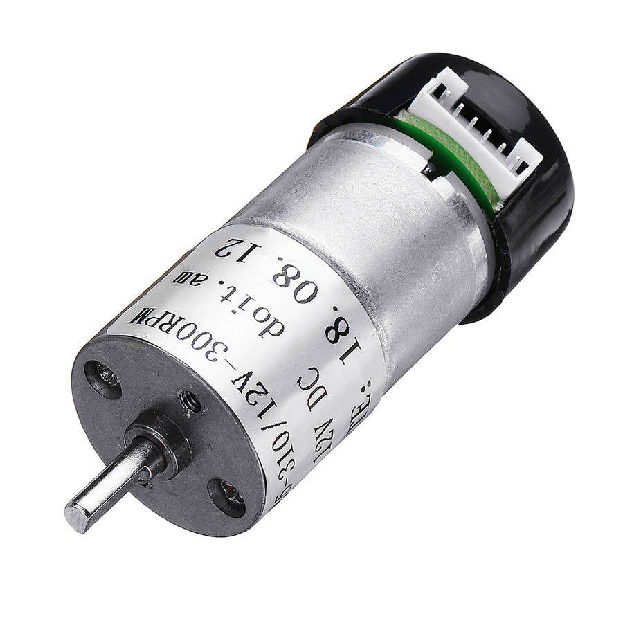 -Voltage: 12V DC -RPM: 300RPM -Current: 0.55A -Diameter: 25mm -Height (excl. shaft): 68mm -Shaft length: 9.5mm -Shaft diameter: 4mm