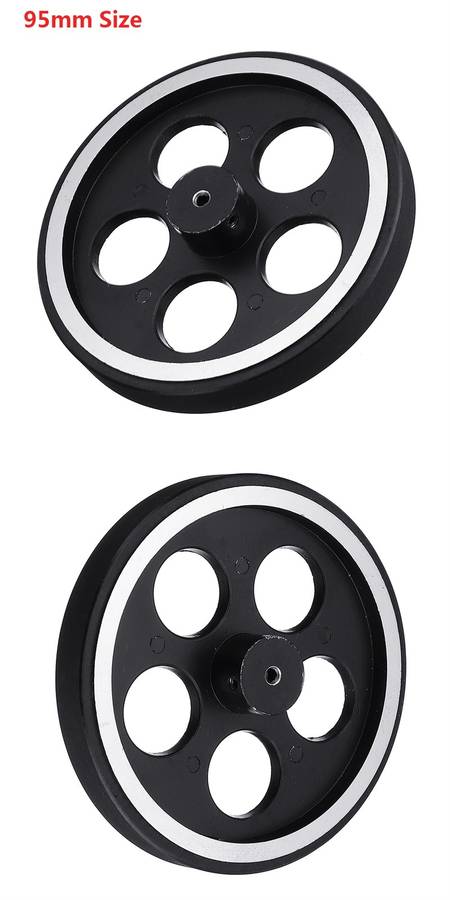 -Wheel material: aluminum alloy -Perimeter: 200mm/300mm -Wheel diameter: 65mm/95mm -Tread width: about 11mm/14mm -Inner hole diameter: 4mm (suitable for DC motors with motor shaft diameters of 4mm) -Coupling: inline -Bearing capacity: 50-100kg