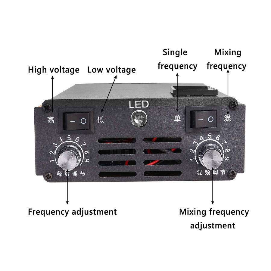 Specifications: Color:Black Drive: Intelligent drive computer board Security protection: 12 intelligent security protections Scope of application: 1-3m Applicable depth: 3m Thyristor: 1 * energy-efficient silicon Power field tube: 14 Applicable battery: 12V 20A or more Product net weight: 1.1KG Size: 230 * 120 * 45mm Pulse Width:1%-12% adjustable Output Frequency:20-120HZ adjustable Output Waveform: sine wave Overload Protection:Yes (120A) Low Voltage Protection:Yes (Less than 9V/DC protection ) High Voltage Protection:Yes (Exceed 15V/DC protection ) Over-temperature Protection: 85ᆪC Features: - Short-circuit Protection&Reverse Polarity Protection&Waterproof Protection. - High power& Low energy consumption& Excellent results, the use of frequency conversation electronic technology. - Full current limiting protection, intelligent pulse, high frequency/low frequency regulation, can be adjusted according to the need to adjust the frequency of electric field size. - Use advanced numerical control technology and exclusive designed computer program .The unique binary output structure.The duty cycle and frequency are adjustable,so they do not affect each other. Packaged included: 1x Ultrasonic Inverter How to use it: - When you use the electrofisher may do not know how to install and use it, here we give the installation method of the electric fishing machine which work on boat, it will help with the beginner to know how to use electrofisher. - The output of electrofisher anode connected with net and cathode connected with wire which put in water; - Connect the electrofisher to batter, anode to anode and cathode to cathode; - Pressing electro fisher switch and than it can work(you can adjust the output power by the digital indicators on the electrofisher); - That is all the simple process for how to use electrofisher.