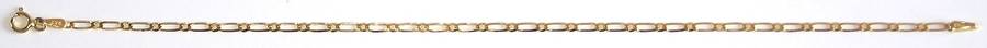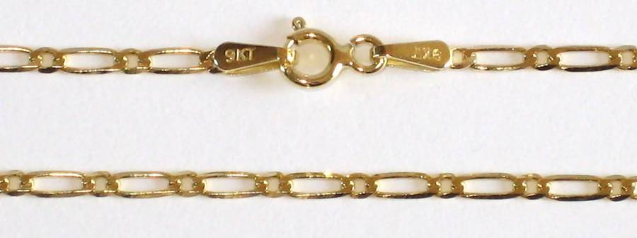 9ct gold BRACELET: 1+1 Figaro, 2.2mm wide, 19cm. Ready for you