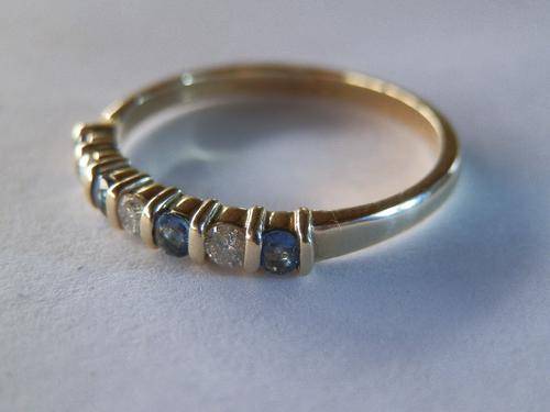 9ct Gold diamond and blue sapphire ring - shipping R35 insured