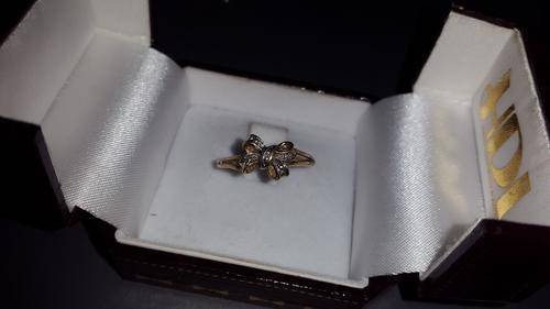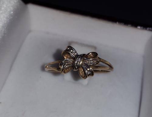 9CT GOLD LADIES BOW RING WITH DIAMONDS