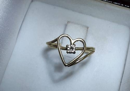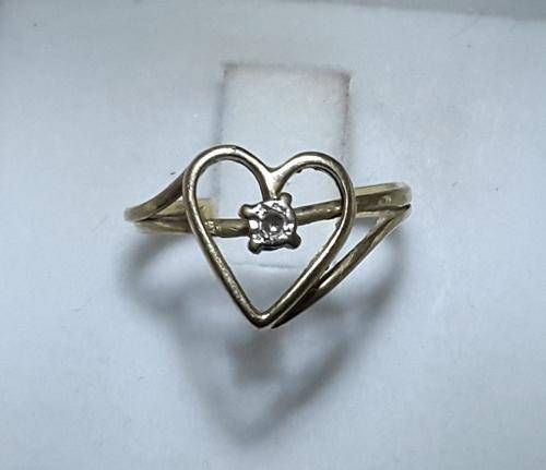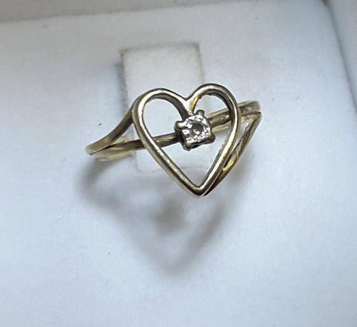 9CT GOLD LADIES HEART SHAPED RING WITH DIAMOND