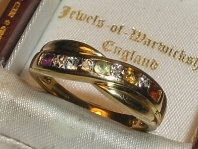 9CT GOLD MIXED STONE & DIAMOND ETERNITY RING SIZE L