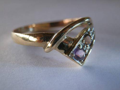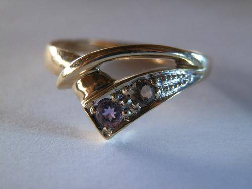 9ct Gold ring with amethyst and smokey topaz, in good used condition