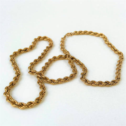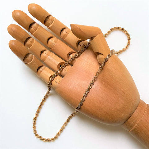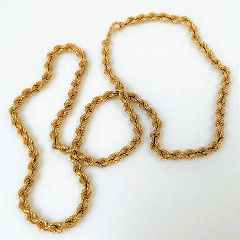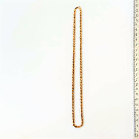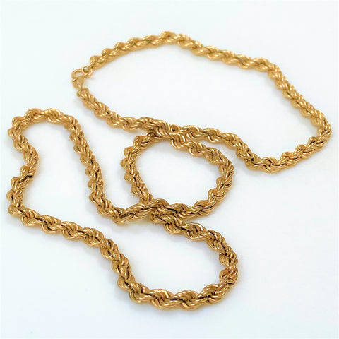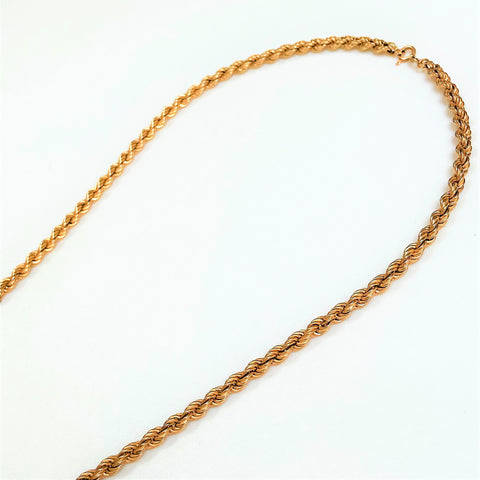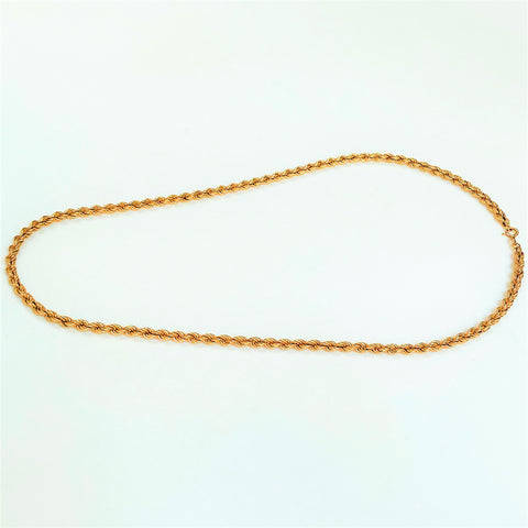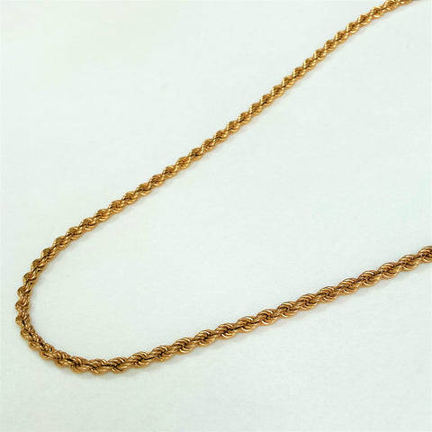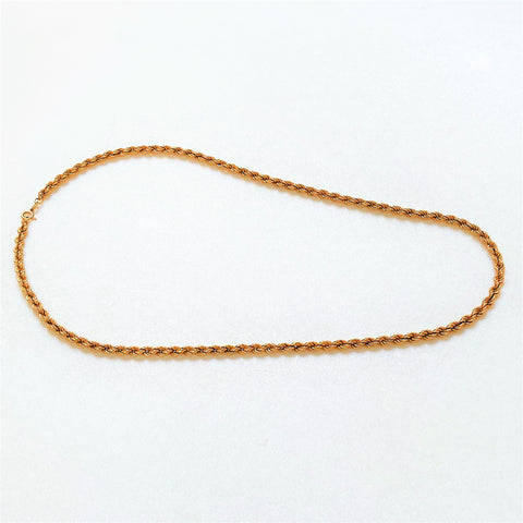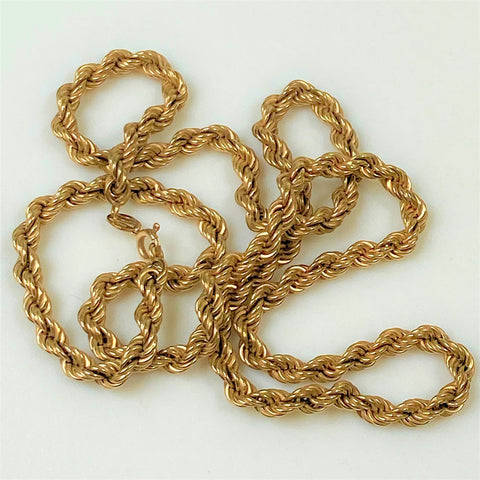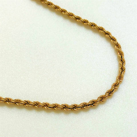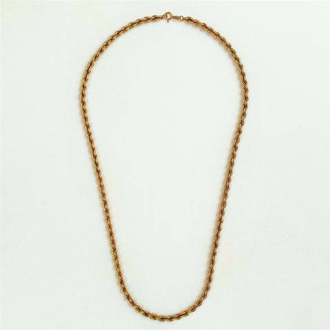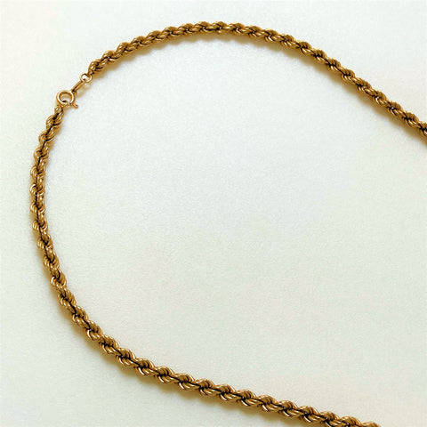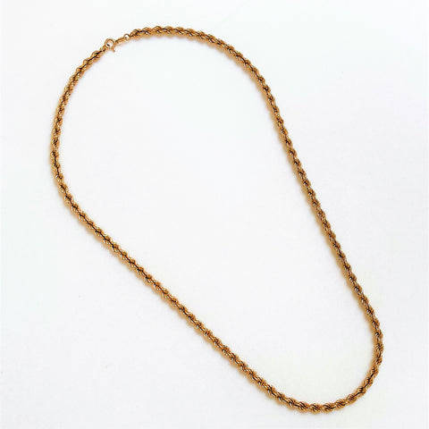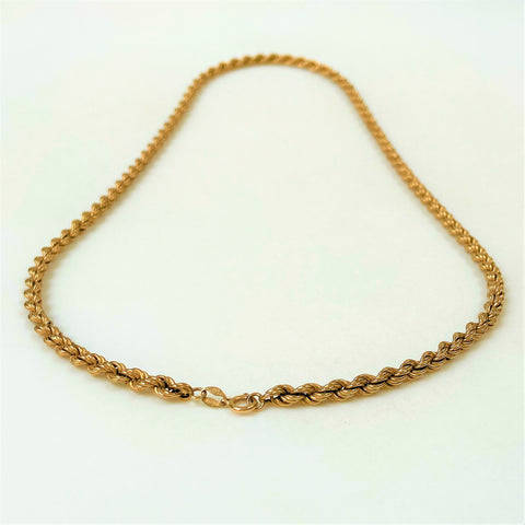 The modern 9ct yellow gold necklace consists of a hollow rope-chain with a bolt-ring clasp. It has Birmingham import marks for 1988 and is marked 375 and has the importers mark MT.
