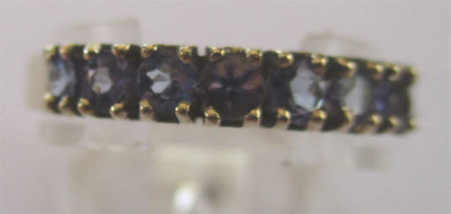 GOLD [ it is solid gold not plaited] IS SET WITH 7.00 pieces round facet cut tanzanite , STONE, WEIGHT approx. + 0.47 ct CT, and the ring weight 2.08 grams.