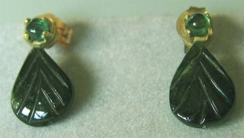 A pair of green Tourmalines  in 9 ct yellow gold.