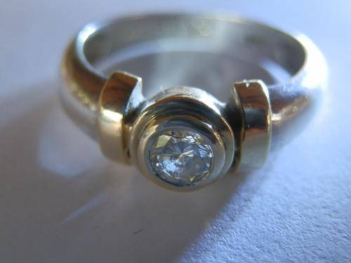 9ct White and yellow gold diamond (5-6mm diam) ring - shipping R35 insured