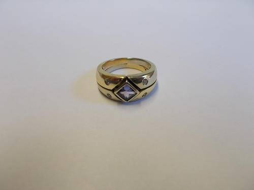 9CT WHITE AND YELLOW GOLD RING WITH 1.25CT REAL TANZANITE AND 4 DIAMONDS