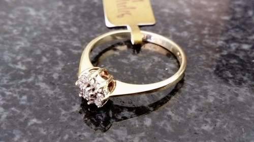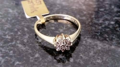 A 9ct Yellow Gold Cluster ring set with nine round Brilliant Cut Diamonds with an approximate total weight of 0.16ct, colour K-L, clarity VS-SI, claw set.