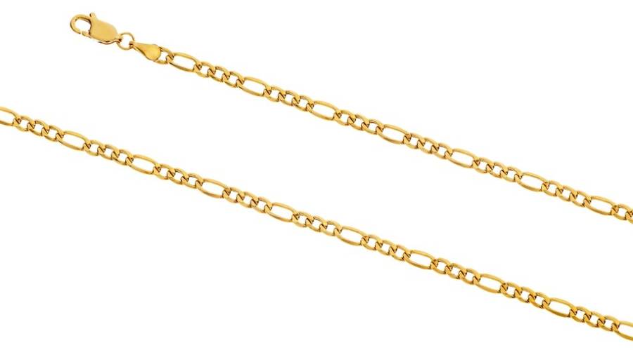 3.4mm wide bevelled 3+1 figaro links on an end ring, V-loops & a carabina clasp, 50cm, 3.3g average weight, hollow.