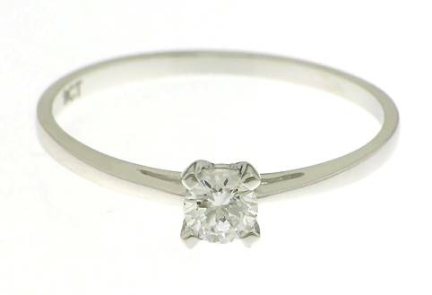 A solitaire ring featuring a 4mm brilliant cut simulated diamond = cubic zirconium.