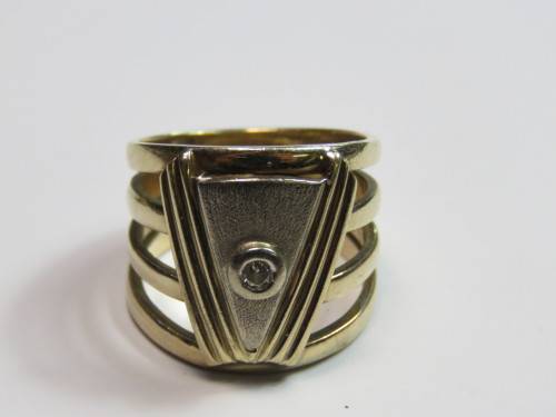 9kt gold ring with small diamond - About 0.08ct - Weighs 8 grams - Size M