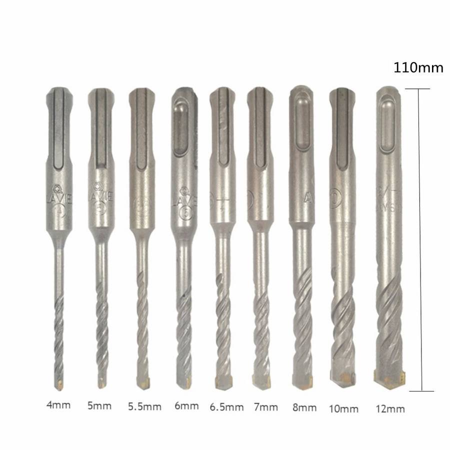 9Pcs Drill Bit Double SDS Plus Slot Electric Hammer Drill Bits Set 110mm Metal HSS Drill Set For Electric Drills Cutting