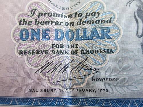 A 1970 RHODESIAN BANK NOTE AND A 1980 ZIMBABWE BANK NOTE