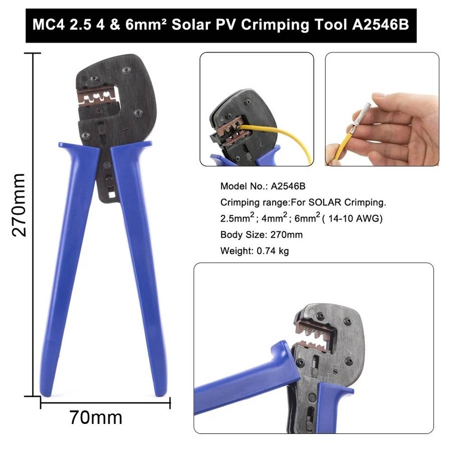 Features: The new PV Crimping Pliers precision pressure line module and all locking design. In the replenish pressure line to maintain a higher standard of quality pressure line. The excellent lever transmission design, isobar larger cross-section of the wire the more labor-saving. Ergonomic design, the position device can be fixed in the jaw, to ensure precise positioning of the terminal of the pressure line. Used for multipole plug connection. High-precision ratchet mechanism for complete crimps. Interchangeable locator for precision positioning of terminals. Specifications: Material: 60 # steel Handle material: polypropylene Capactiy: 2.5/4.0/6.0mm2 AWG: 14-10AWG Role: compression bonding Shape: curved mouth Applicable object: cable, other Style: American Length: 270mm Package size: 35 x 14 x 2.7cm/13.77 x 5.51 x 1.06in Package weight: 780g Packing lncluded: 1 x Crimping Plier