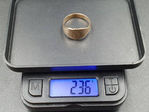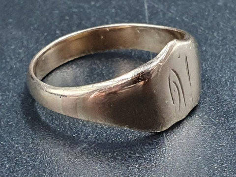 This engraved signet ring is perfect as a gift or for oneself, this traditional signet ring in 9ct gold is the hallmark of sophistication. Initially recognized as symbol of family heritage, the signet ring still represents class and style. The ring is a size K and weighs 2.36 grams. The engraving on the front has faded slightly. The ring is stamped 9ct.