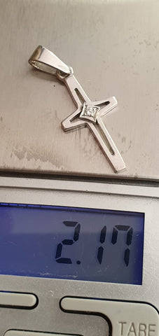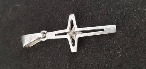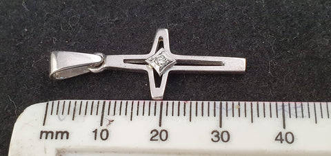 A 9ct white gold cross pendant with a centre Diamond