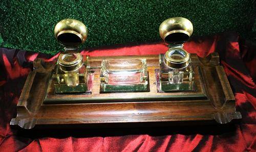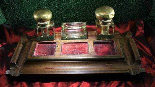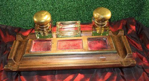 A Antique Wooden Ink well set ..what a lovely Piece 373mm x 180mm see more