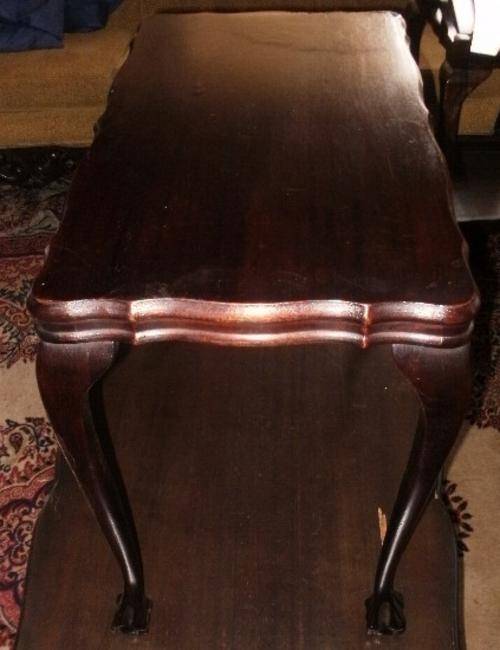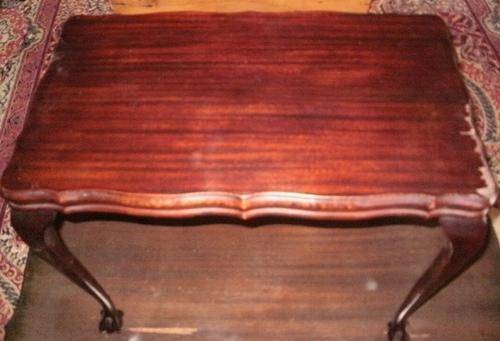 A MAHOGANY BALL AND CLAW SIDE TABLE, GOOD CONDITION. DAMAGE AS PER PICS.