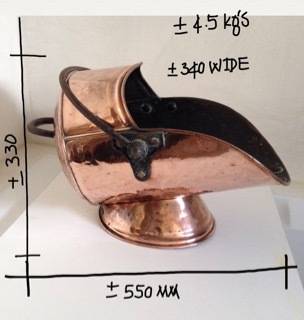 A VERY BEAUTIFUL HAMMERED COPPER COAL, LOG OR WOOD SCUTTLE