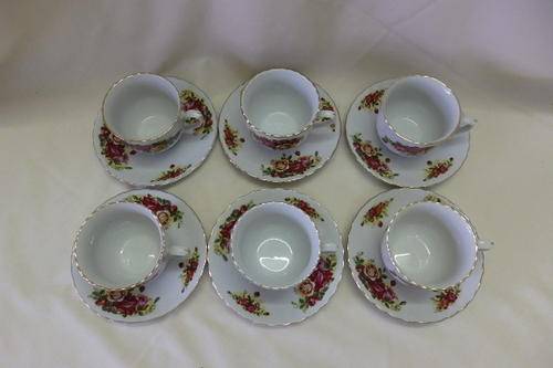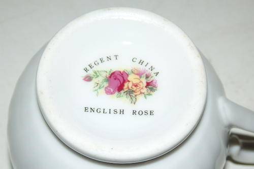 THIS GORGEOUS COLLECTION OF SIX REGENT CHINA "ENGLISH ROSE" TEA CUP AND SAUCER DUO'S ARE IN AWESOME CONDITION AND HAVE NO CHIPS OR CRACKS IN THE CHINAWARE. EACH OF THE PIECES HAS BEEN BEAUTIFULLY FINISHED WITH GOLD GILDING AROUND THE EDGES. THERE IS MINIMAL AGE AND USAGE RELATED WEAR AND TEAR.