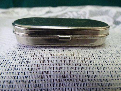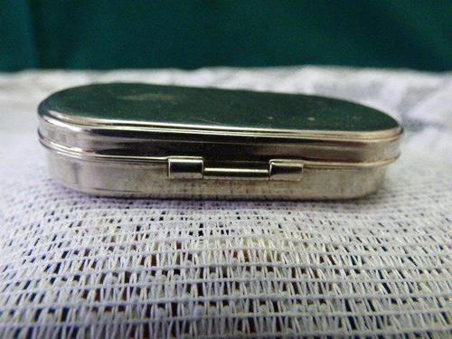 THIS DELICATE LITTLE PILL BOX HAS THE MAKINGS OF A SPECIAL GIFT, PERSONALISE IT BY HAVING IT ENGRAVED FOR THAT SPECIAL SOMEONE. IT’S THOUGHTFUL, CONVENIENT AND VERY PRETTY. OPENS UP A HINGED LID TO TWO COMPARTMENTS AND A MIRROR. THIS GORGEOUS LITTLE BOX IS 7cm x 3 cm.