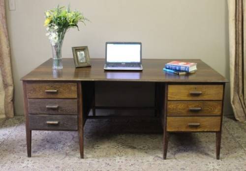 This beautiful vintage 6-drawer Partridge wood desk is in good condition for its age and measures a decent 184cm long x 121cm wide x 78cm high. The desk is ideal for a home study or office and big enough to use as a sewing table, arts and crafts table. There is ample storage space in the six drawers and the desk has a gorgeous old-school charm about it. There is normal vintage wear and tear and scuffs etc, but it adds to the character and wonderful charm of this lovely vintage desk (as shown in the pics). The desk has good weight to it and sits well on the ground. Please view the pics carefully to fully appreciate this wonderful vintage desk and to confirm the condition.Please view the shipping options or request courier costs prior to purchasing any of our products. MAKE AN OFFER!!!!