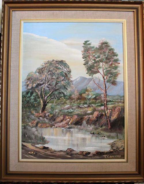 A beautiful and large oil painting signed C Campbell. This painting is beautifully framed and in excellent condition. A very classy and high-level piece.