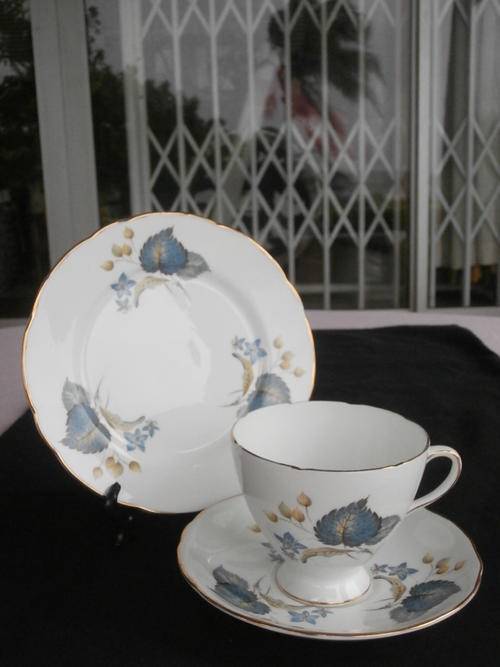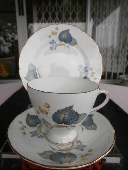 A BEAUTIFUL OLD FOLEY GLADSTONE STAFFORDSHIRE TRIO MADE IN ENGLAND IN MINT CONDITION. BEAUTIFUL SCALLOPED LIP AROUND TOP OF CUP AND THE GILDING IS STILL IN GOOD CONDITION.