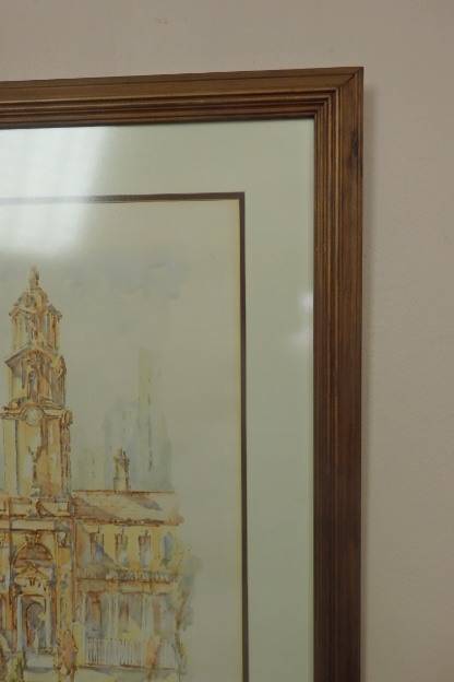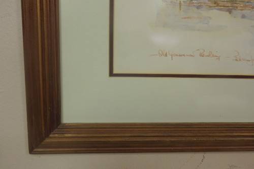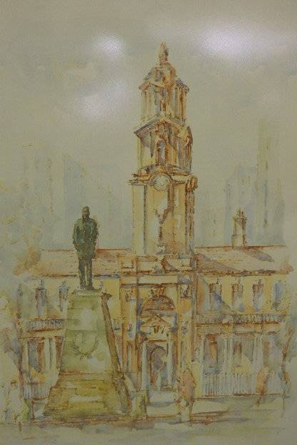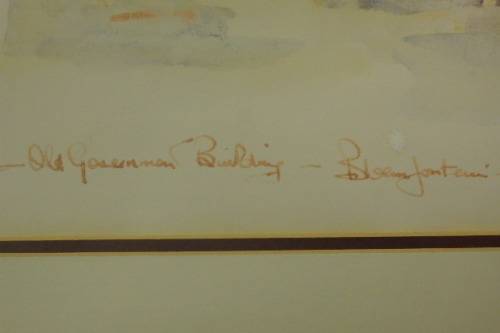 THIS MAGNIFICENT ORIGINAL WATERCOLOUR PAINTING OF "THE OLD GOVERNMENT BUILDING - BLOEMFONTEIN" BY INTERNATIONAL ARTIST EDMUND BARTON (LIVING IN SOUTH AFRICA) IS PART OF HIS HISTORICAL SOUTH AFRICAN BUILDING COLLECTION WHICH I BELIEVE WAS A SPECIFICALLY COMMISSION. THE PAINTING IS FRAMED BEHIND NON-REFLECTIVE GLASS IN A SOLID WOODEN FRAME. THE PAINTING IS IN BEAUTIFUL CONDITION AND MEASURES 570mm WIDE x 675mm HIGH. HIS APPLICATION OF COLOURS AND ATTENTION TO DETAILING MAKES THIS ENTIRE COLLECTION A MASTER PIECE. THE PAINTING IS SIGNED AND THE TITLE INSCRIBED ON THE PAINTING. YOU ARE WELCOME TO VIEW THE COLLECTION AT OUR EDENVALE BRANCH.