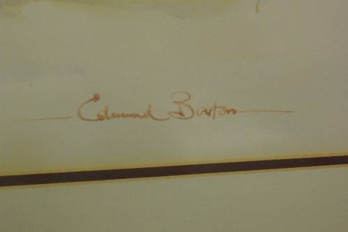 FROM THE INTERNET: Edmund Barton is an international artist producing artwork covering a vast range of subject matter and styles. Based in Gordons Bay near Cape Town in South Africa he operates his own galleries and most of his works are commissions. On the following pages you will see a cross section of paintings for sale and the artist welcomes commissions on any of the subjects shown.