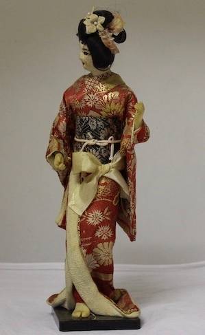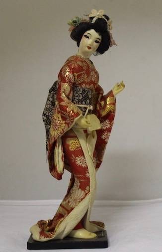 This delicately made Japanese cloth Geisha ornamental display figurine is perfect for display on shelves and collections. The figurine measures 28,5cm high. There is minimal wear and tear on the figurine. Please view the pics carefully to fully appreciate this fabulous figurine and to confirm the condition.