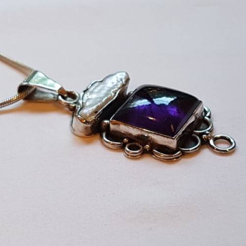 ***Amazing Sterling silver, Amethyst and pearl pendant & chain***