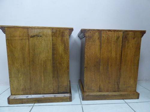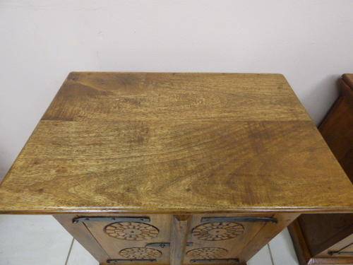 A BEAUTIFUL MATCHING PAIR OF LIGHT BURMESE TEAK BEDSIDE TABLES IN FANTASTIC CONDITION. THESE GORGEOUS BEDSIDE TABLES WILL LOOK STUNNING IN YOUR BEDROOM, GUEST ROOMS OR IN ANY FORMAL ROOM IN YOUR HOME. THEY MEASURE APPROXIMATELY 38cm x 58cm x 66cm HIGH. ABSOLUTELY GORGEOUS.!! PLEASE NOTE THAT THE ONE WOOD LATCH IS MISSING ON ONE OF THE PEDESTALS AS SEEN IN THE PICS.