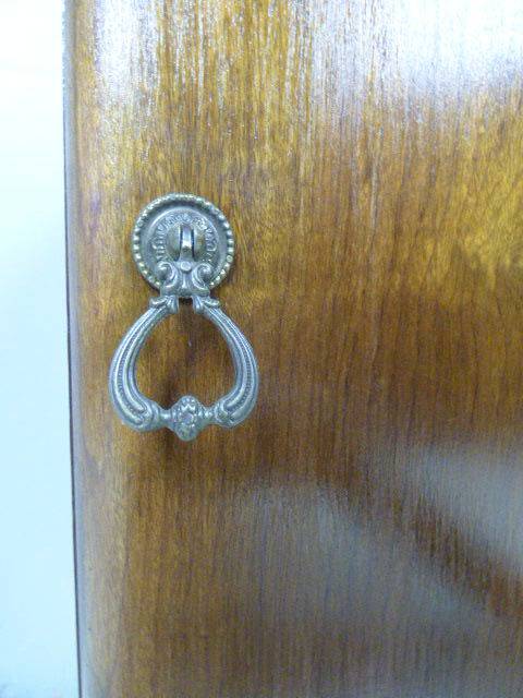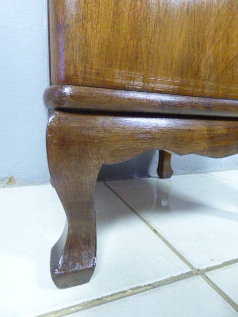 A beautiful, stylish Imbuia pedestal in fantastic condition. This gorgeous bedside pedestal will look stunning in your bedroom, guest rooms or in any room in your home. It measures approximately 41cm x 42cm x 79cm high. This lovely piece of furniture could be used as a display table too. It has a nice sized cupboard with a shelf in it.