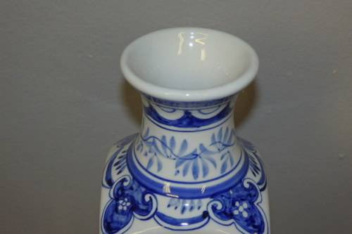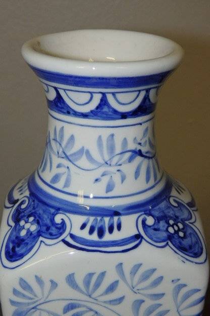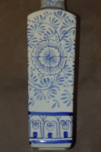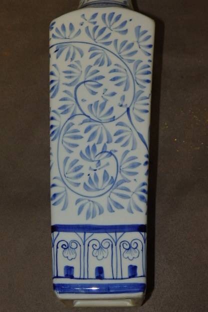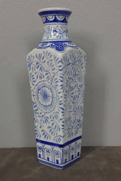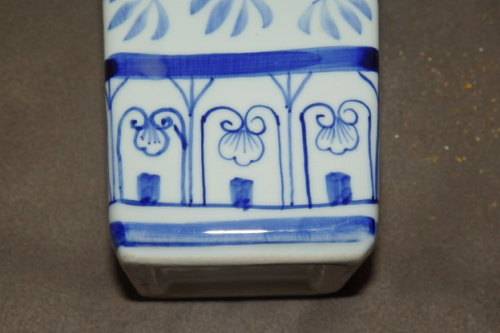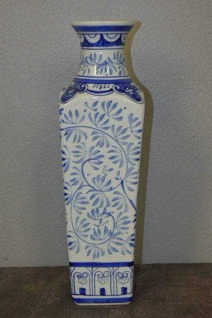 THIS BEAUTIFUL TALL BLUE AND WHITE HAND PAINTED ORIENTAL PORCELAIN VASE IS IN FABULOUS CONDITION AND MEASURES 26.5m HIGH x 7.5cm x 7.5cm. THE VASE HAS NO CHIPS OR CRACKS IN THE PORCELAIN AND ABSOLUTE MINOR AGE AND USAGE RELATED WEAR AND TEAR. THIS IS A BEAUTIFUL DISPLAY VASE THAT WOULD BE EYE-CATCHING NO MATTER WHERE IT IS DISPLAYED.