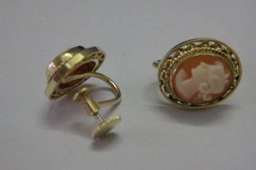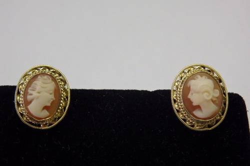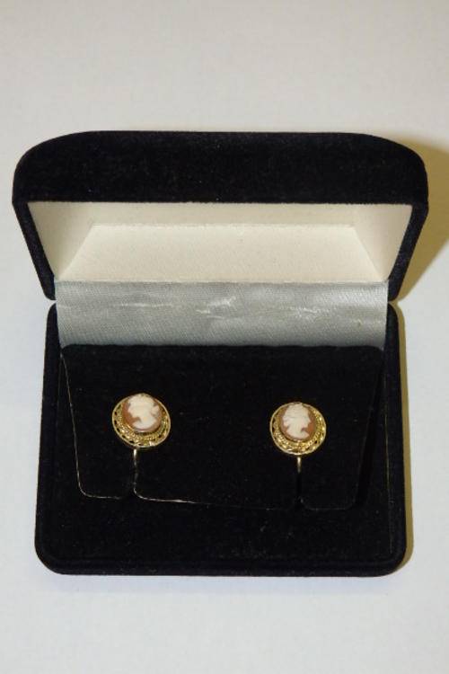 THIS BEAUTIFUL VINTAGE/ANTIQUE? PAIR OF STERLING SILVER (STAMPED 925) LADIES CAMEO CLIP-ON EARRINGS LOOKS TO BE GOLD, BUT IS INFACT SILVER VERMEIL (THERE IS A MINISCULE AMOUNT OF GOLD IN IT). THE EARRINGS HAVE A SCREW TYPE CLIP. THIS GORGEOUS PAIR OF CAMEO EARRINGS IS IN A BLACK VELVETY BOX AND ARE IN GREAT CONDITION FOR THEIR AGE.