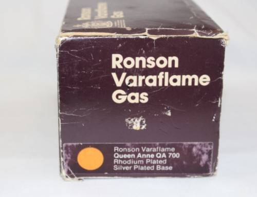 This beautiful vintage Ronson "Queen Anne" Varaflame 700 Rhodium and silver plated table lighter is still in its original box and is in superb condition. The lighter is Rhodium plated and the base is silver plated. The lighter has absolute minimal signs of usage related wear and tear and tarnish etc and has remained like new in its box. These lighters were introduced in the 1940's (this is a newer model) and has remained one of the most beautiful table lighters around. The lighter is in complete working condition and a superb table lighter for a collector. The lighter measures 9cm long x 4.7cm wide x 6cm high. The box has some wear and tear as shown in the pics. The lighter needs fluid and a flint. Please view the pics carefully to fully appreciate this stunning Ronson "Queen Anne" Varaflame 700 Rhodium plated table lighter and to confirm the condition. Please view the shipping options or request courier costs prior to purchasing any of our products.