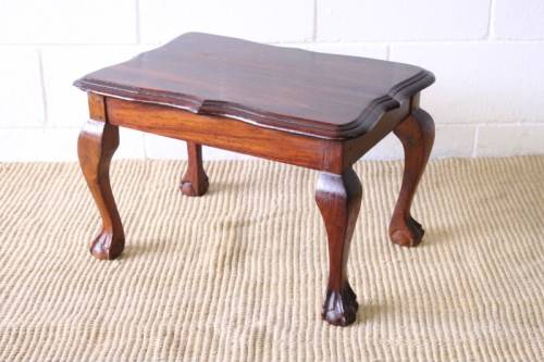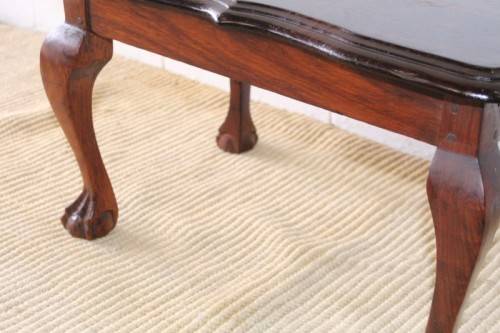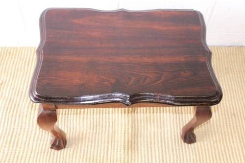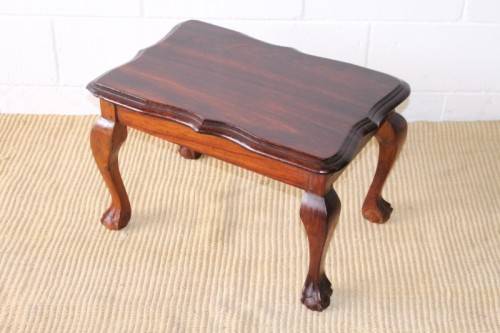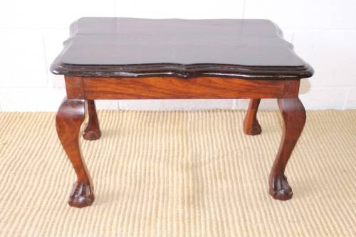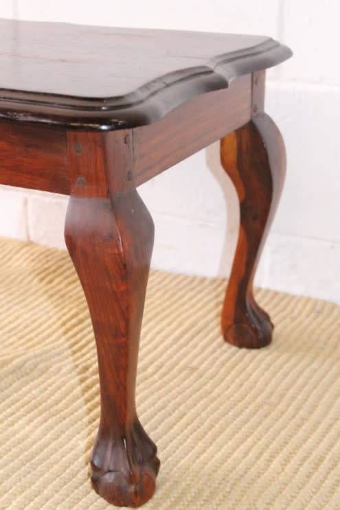 This beautiful vintage scalloped edge solid African Stink wood ball and claw coffee/ side table measures 58.5cm long x 40.5cm wide x 36cm high. The table is perfect for the living room and is a solid well made side table. The table has some repair work on the one corner - see pic, but is still a very practical and ball and claw coffee table. There is normal age and usage related wear and tear and scuffs etc. Please view the pics carefully to fully appreciate this wonderful stink wood ball and claw coffee table and to confirm the condition. Please view the shipping options or request courier costs prior to purchasing any of our products.