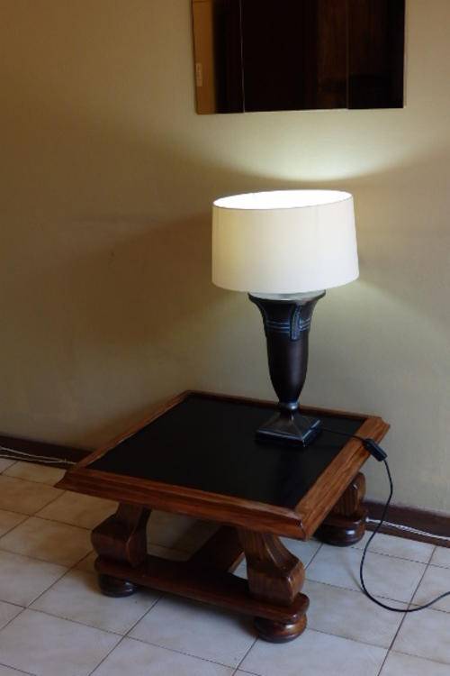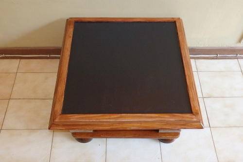 THIS BEAUTIFUL SOLID VINTAGE "TWO-TONE" COFFEE TABLE WITH VERY STURDY LEGS IS IN WONDERFUL CONDITION AND HAS BEEN STAINED WITH A TEAK AND EBONY EFFECT. THE TABLE IS 580mm x 580mm AND IS 370mm HIGH. IT IS THE PERFECT PIECE FOR OUTDOORS AND HAS A SLIGHT "LIP" AROUND THE EDGE OF THE TABLE. THE TABLE HAS BEEN VERY WELL MADE AND COULD ALSO HOLD A LARGE BUNCH OF FLOWERS OR A LARGE TABLE LAMP.