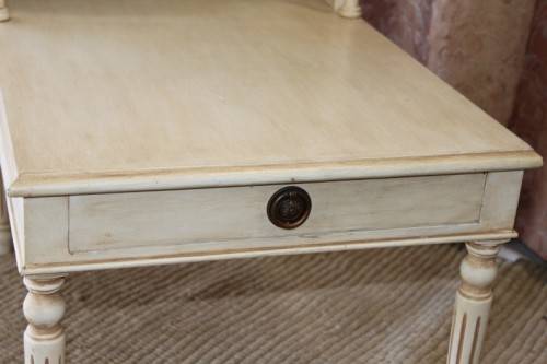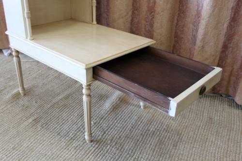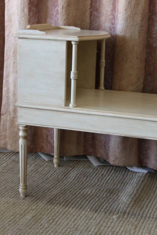 THIS FABULOUS VINTAGE SINGLE DRAWER CREAM PAINT TECHNIQUE'D ON SOLID WOOD TELEPHONE TABLE WITH REGENCY LEGS AND COLUMNS MEASURES 660mm LONG x 460mm WIDE x 695mm HIGH AND IS IN WONDERFUL CONDITION. THIS IS A VINTAGE TELEPHONE TABLE THAT HAS BEEN PAINTED AND IT WOULD TAKE VERY LITTLE EFFORT TO RESTORE IT BACK TO ITS FORMER GLORY IF YOU CHOOSE. THE TABLE IS STURDY AND IS A BEAUTIFULLY MADE PIECE. PLEASE VIEW THE PICTURES CAREFULLY TO FULLY APPRECIATE THIS FANTASTIC TELEPHONE TABLE AND TO CONFIRM THE CONDITION.