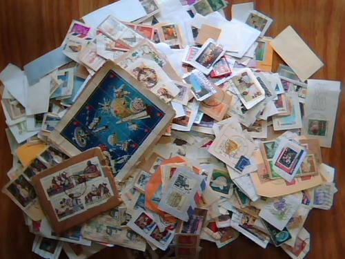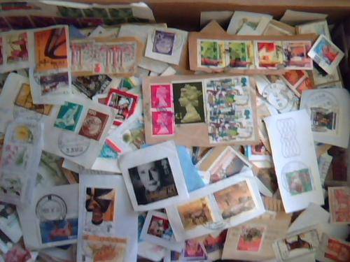 A box full of stamps on paper close cut mostly. Box weighs +- 1.4kgs and measures 35x23x8cms Lot and lots.