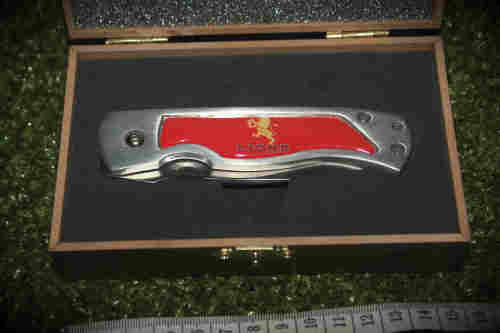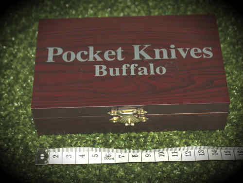 __A Buffalo Lions Supporter Pocket Knife in wooden Box CONDITION: SOLD as FOUND - -Please see ALL IMAGES below |